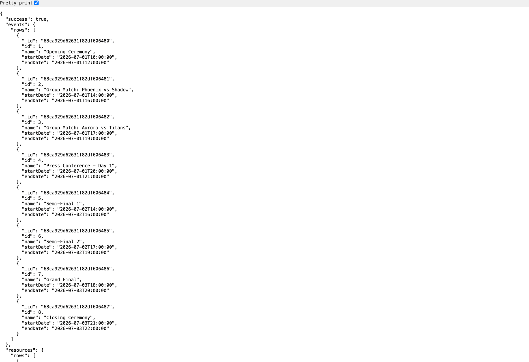 Visit http://localhost:3000/api/load in your browser (adjust the port if necessary). You should see a JSON response that Bryntum Calendar will use to load events.
