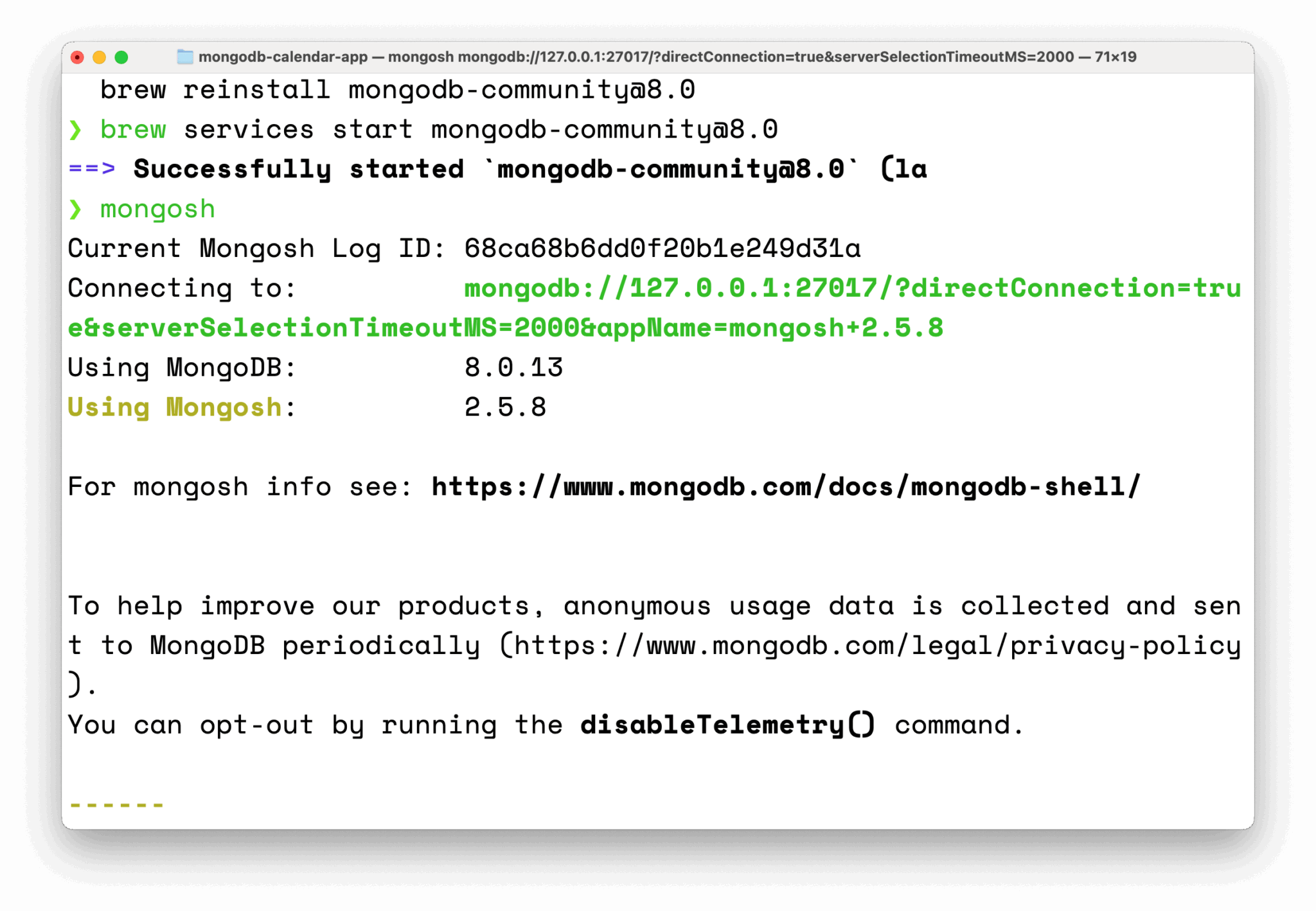After this step, restart the app. The Bryntum Calendar should display the data from your MongoDB database.