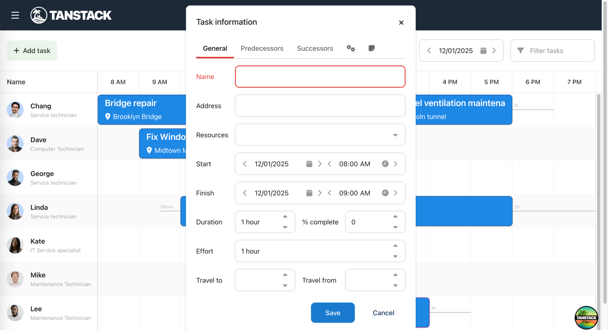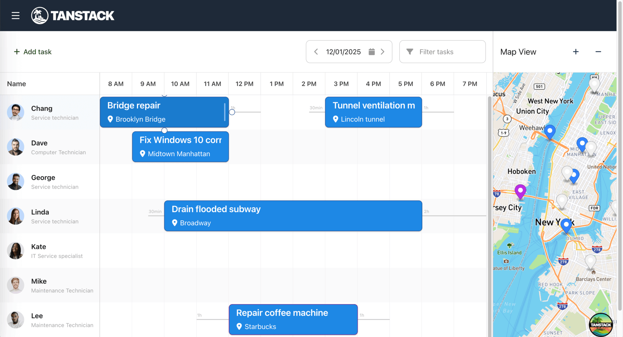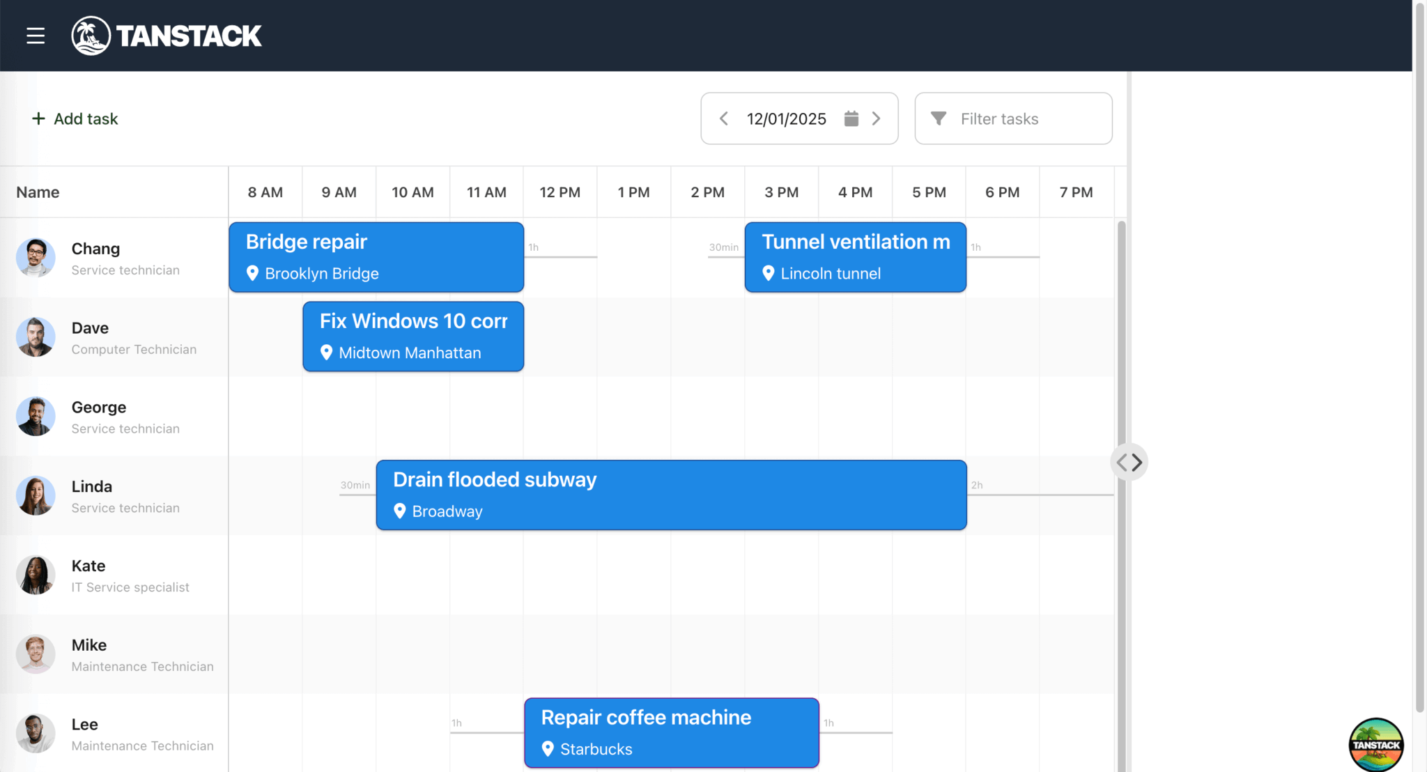 This scheduler is similar to our maps integration demo, except it uses TanStack Table instead of Bryntum Grid.