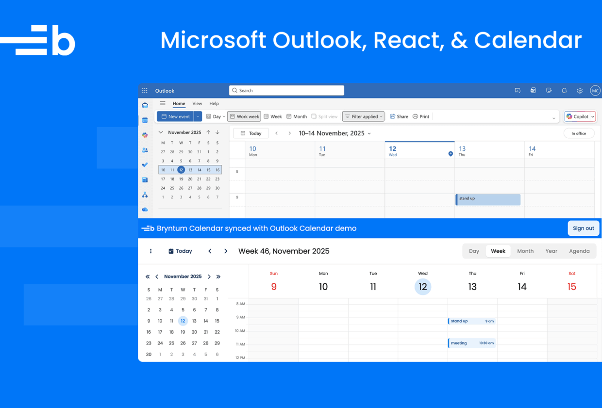 - Syncing event changes in the Bryntum Calendar with the user’s Microsoft Outlook Calendar.
