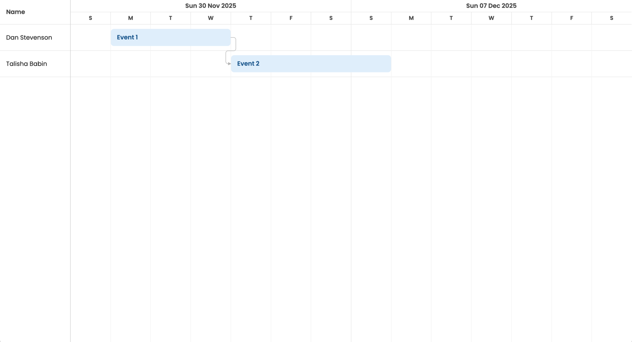 You’ll see a Bryntum Scheduler Pro with two resources and two events: