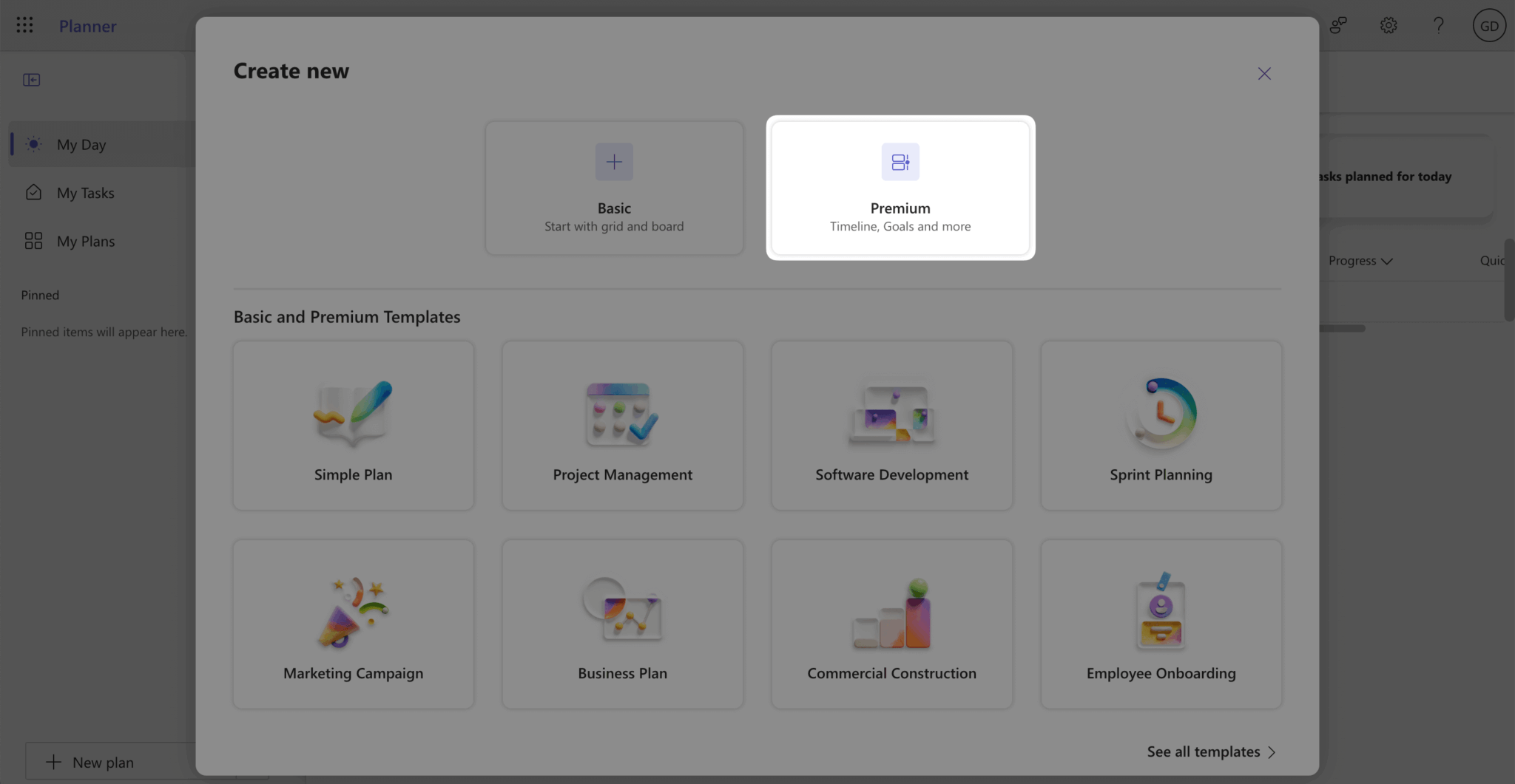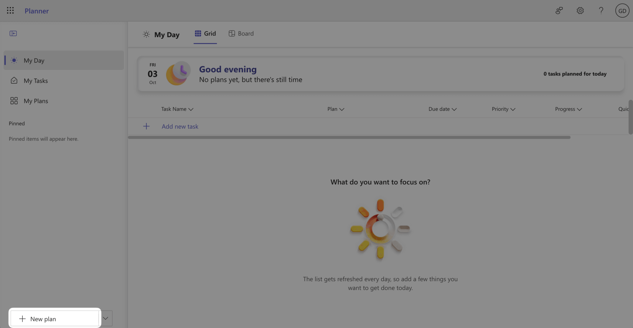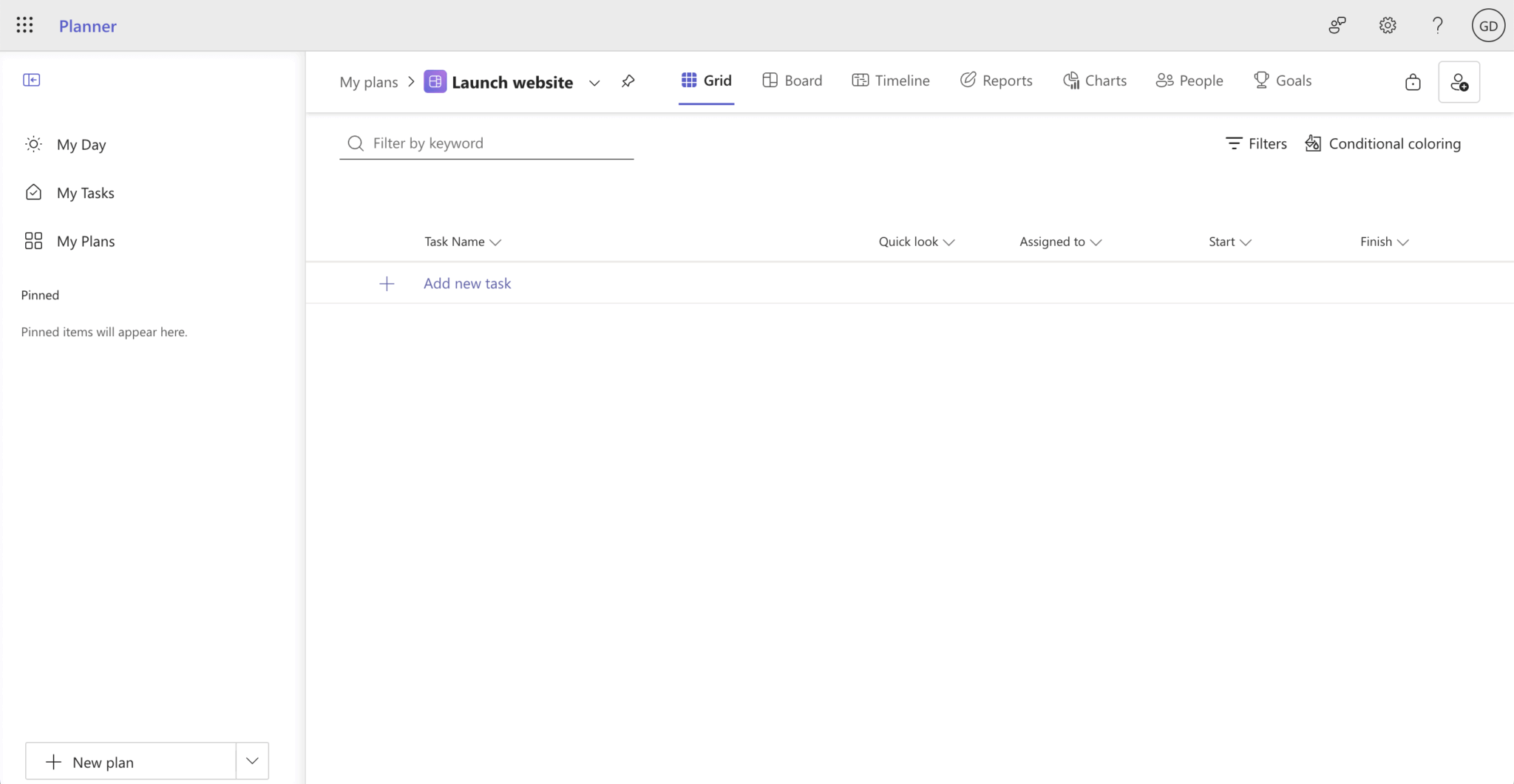If you don’t already have a Microsoft Planner plan, create one by signing in to Microsoft Planner. Click the + New plan button at the bottom-left corner of your screen.