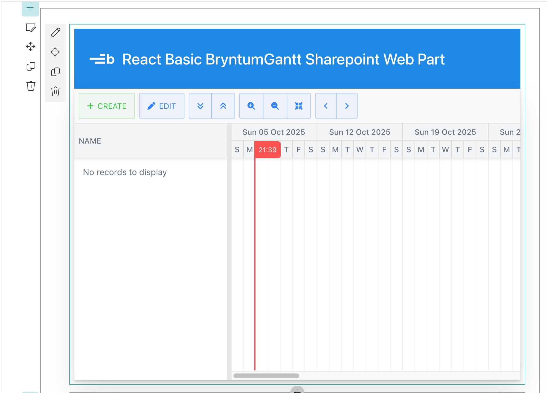 You should now see your Bryntum Gantt SharePoint web part in the SharePoint workbench: