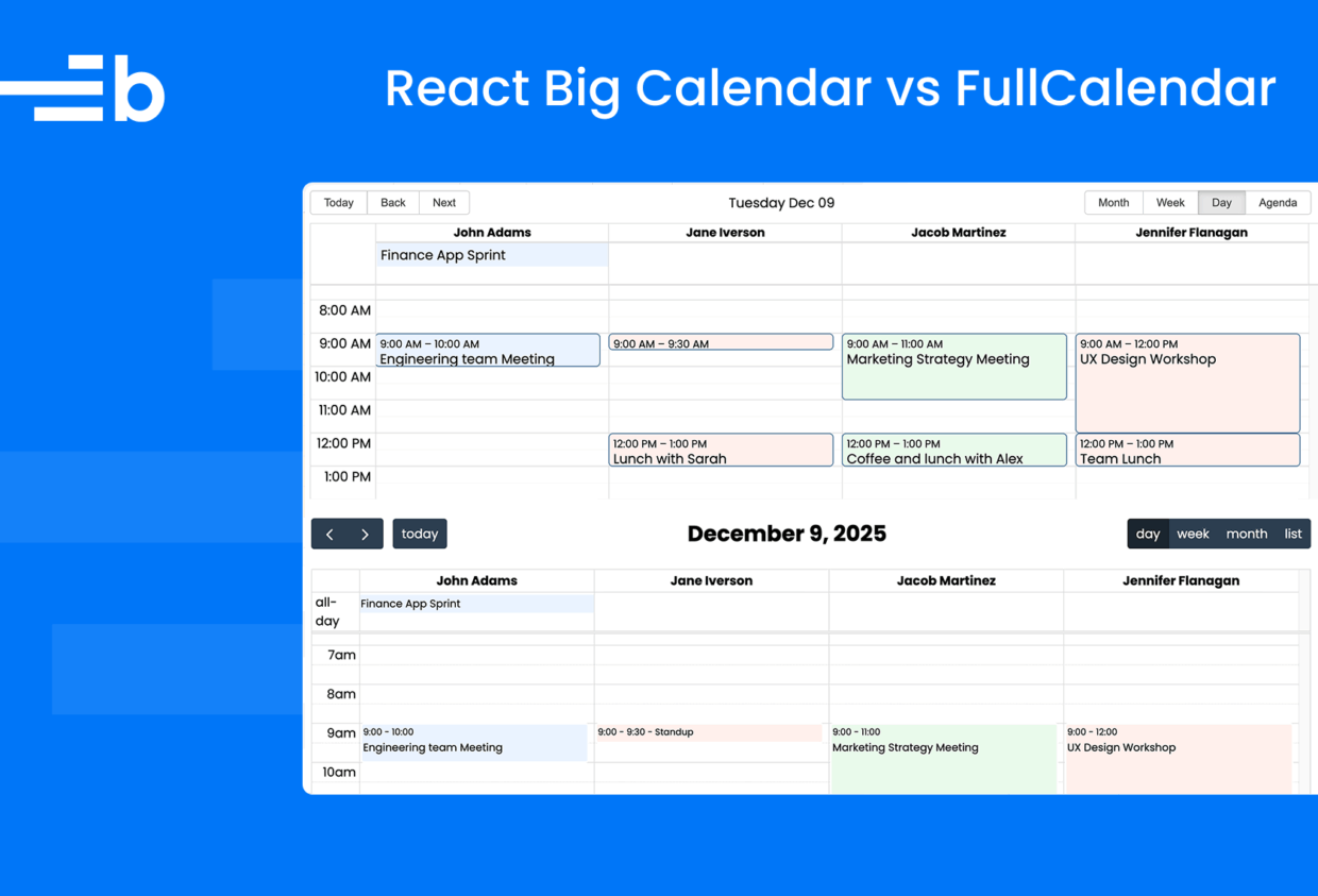 React Big Calendar and FullCalendar are two popular React calendar components. When choosing a component for your app, should you go for the fully open-source React Big Calendar or the more widely used FullCalendar? This article explores the features, setup, and pricing of both calendars, and compares their pros and cons to help you choose the best component for your use case.