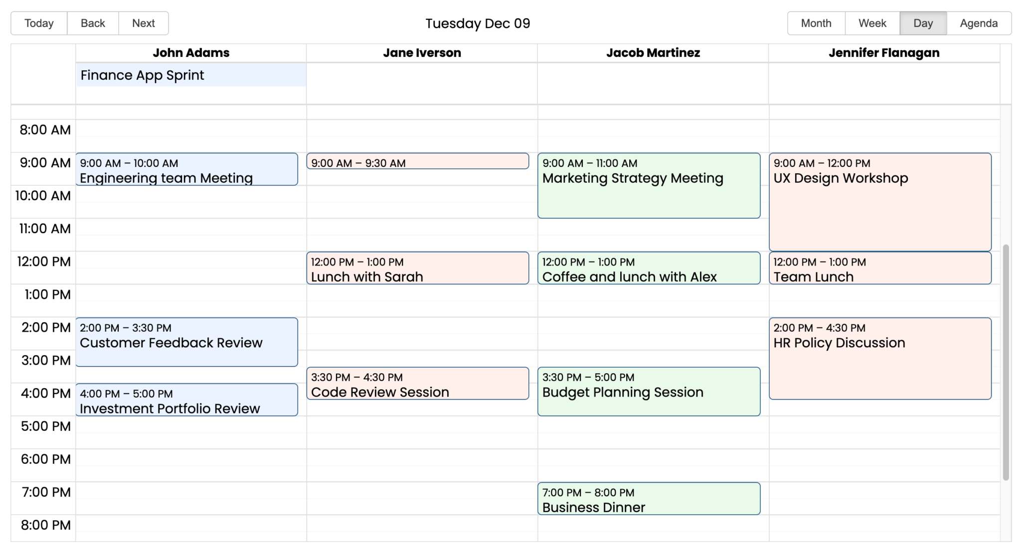If neither FullCalendar nor React Big Calendar meets your needs, consider using Bryntum Calendar, a React UI component that offers enterprise-grade calendar functionality with comprehensive features out of the box. Bryntum Calendar readily supports Vue, Angular, and other frameworks and smoothly integrates with modern web development tools.