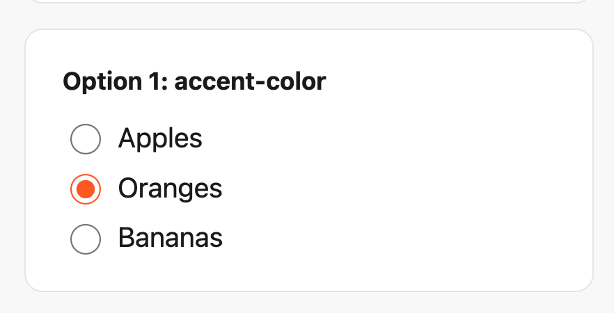 If you just need a quick brand color tweak, accent-color gets the job done in one line.