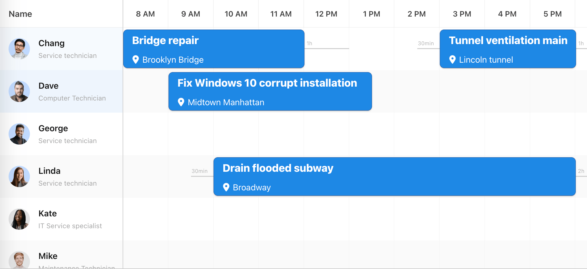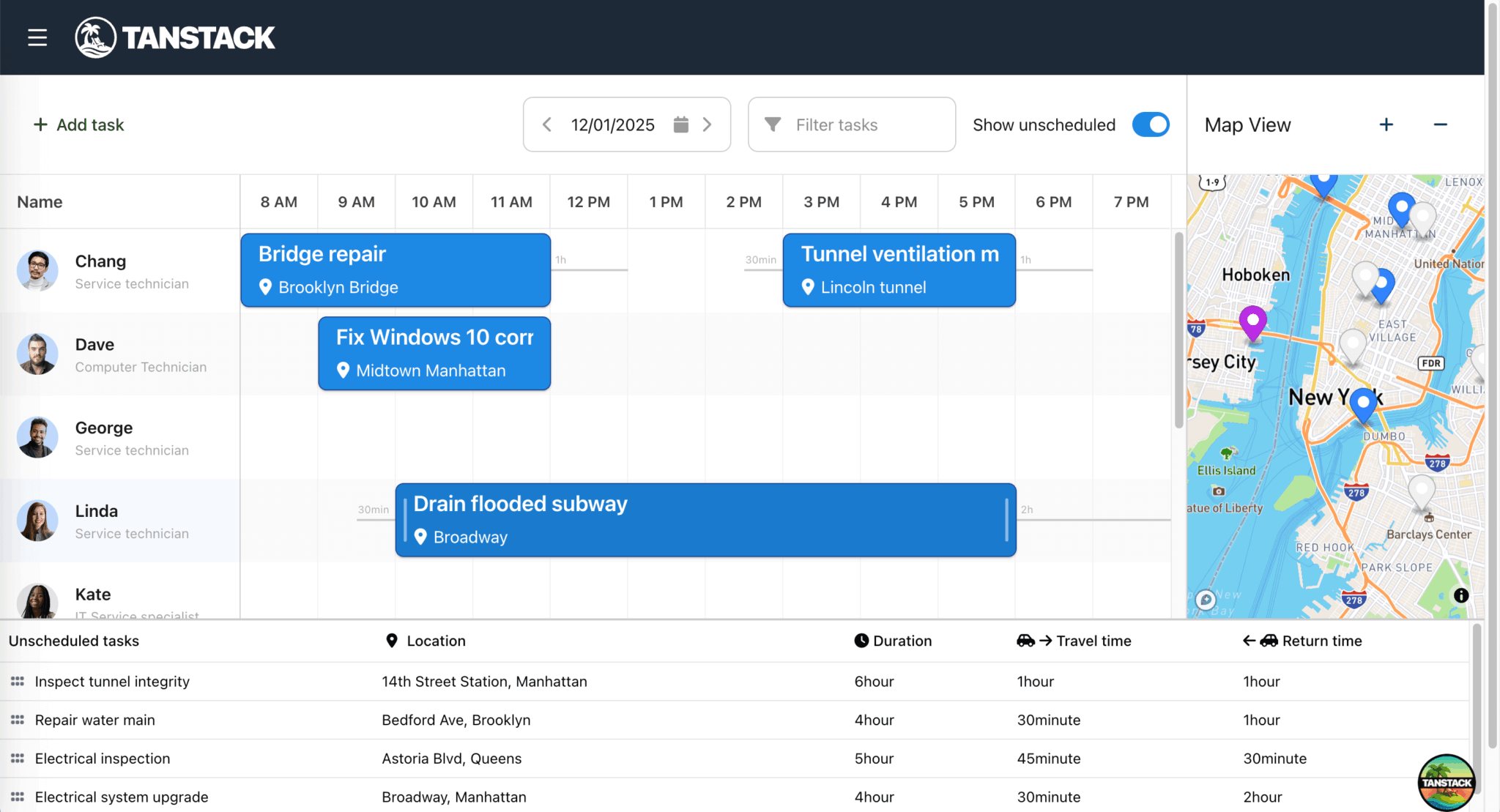 In our blog post, Build a location-based scheduler with Bryntum Scheduler Pro, TanStack Table, Shadcn UI, and Mapbox, we built a TanStack Table styled with Shadcn UI components that shows unplanned tasks next to a Bryntum Scheduler Pro timeline: