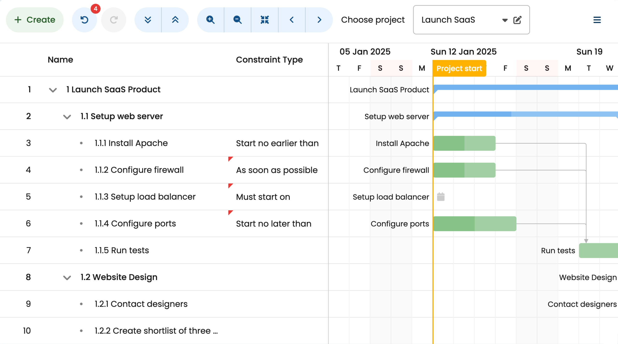 The Bryntum Angular Gantt engine provides asynchronous scheduling of any number of tasks by taking task dependencies, constraints, and scheduling modes into account. The Bryntum Angular Gantt engine is implemented independently from the DOM and can also be run on a node server.