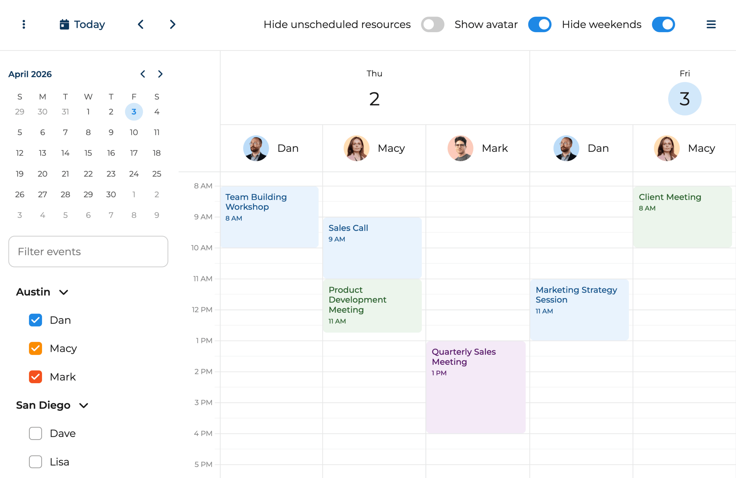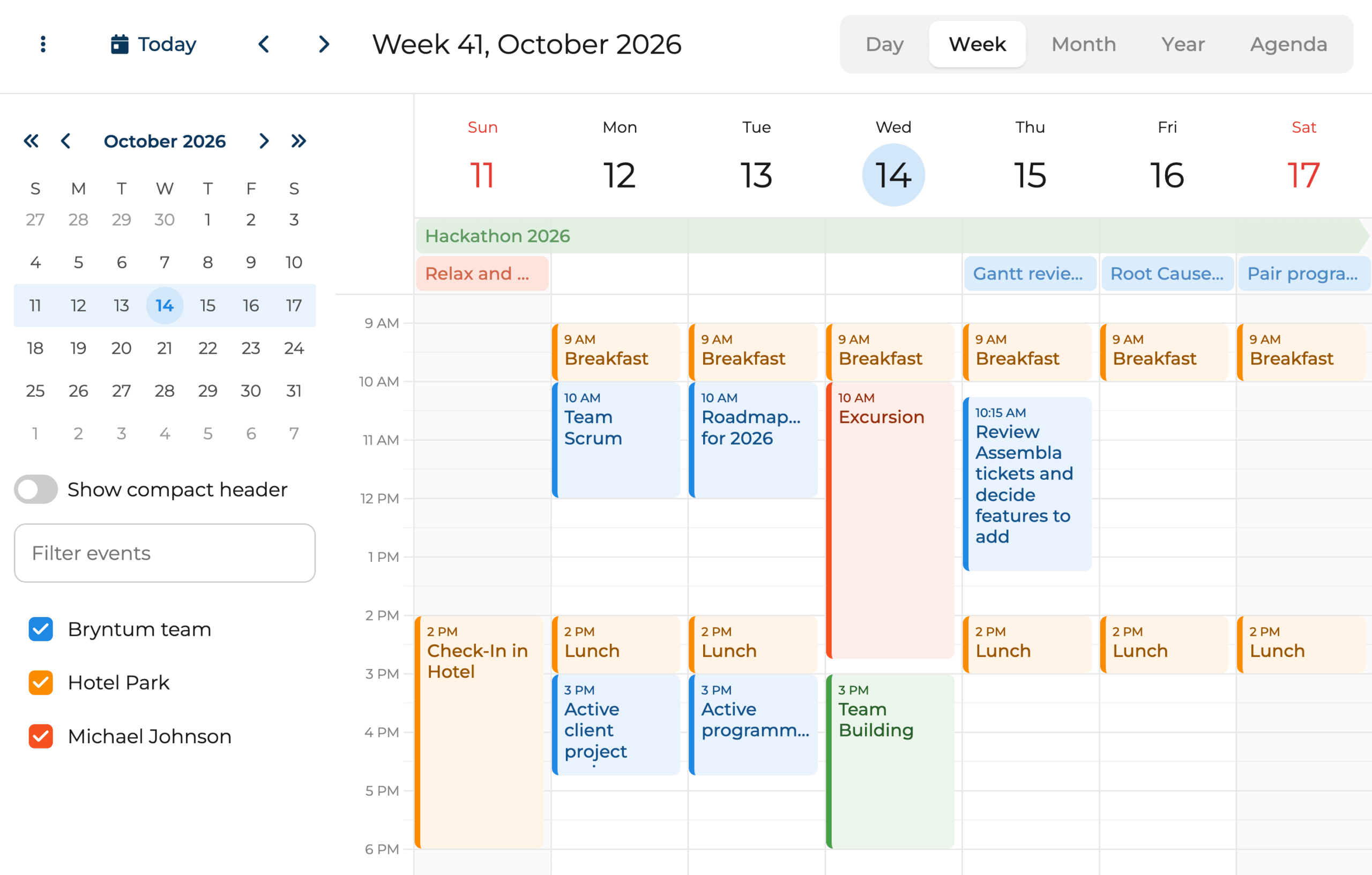 The Bryntum Calendar has unique features to support your team’s productivity: