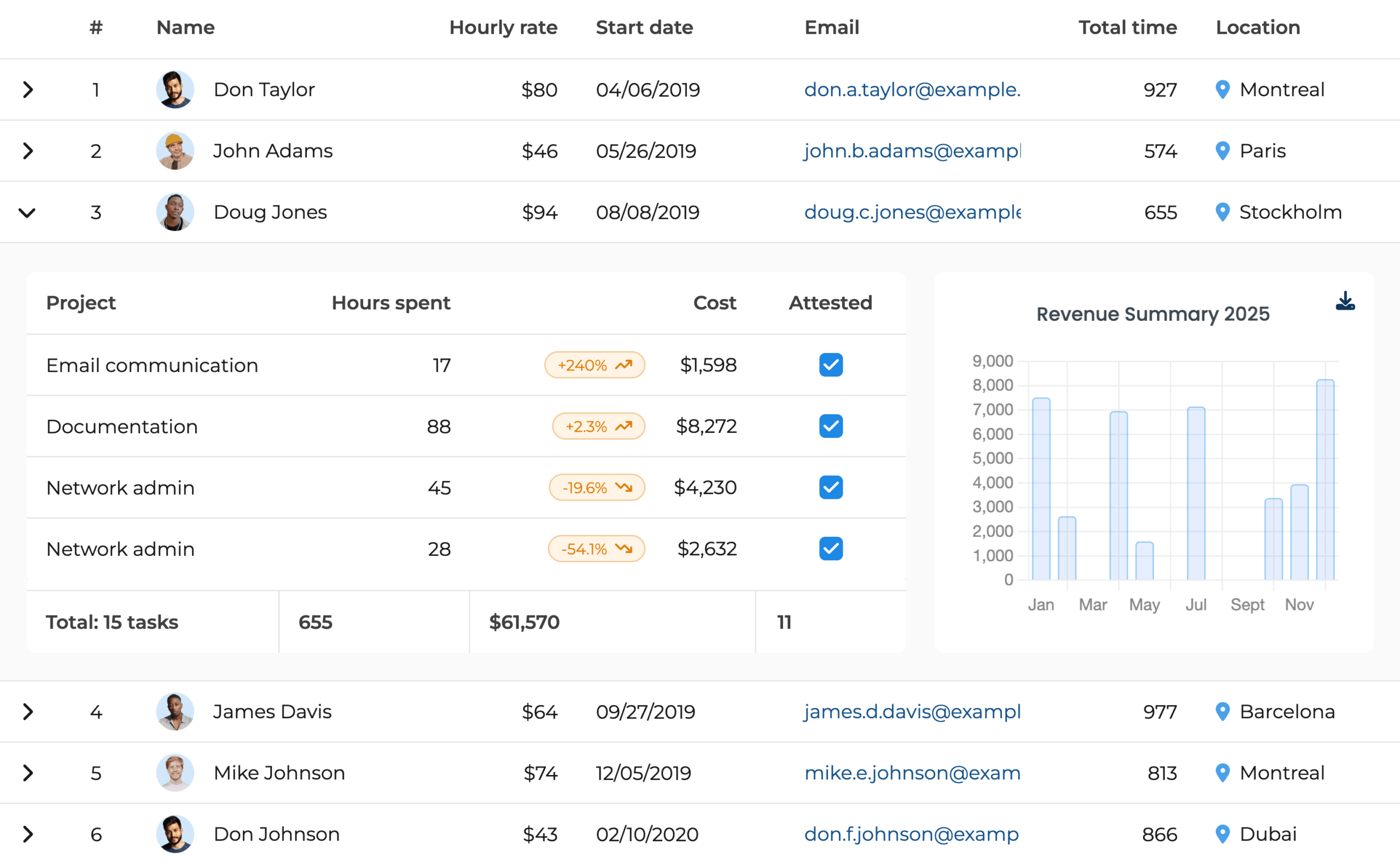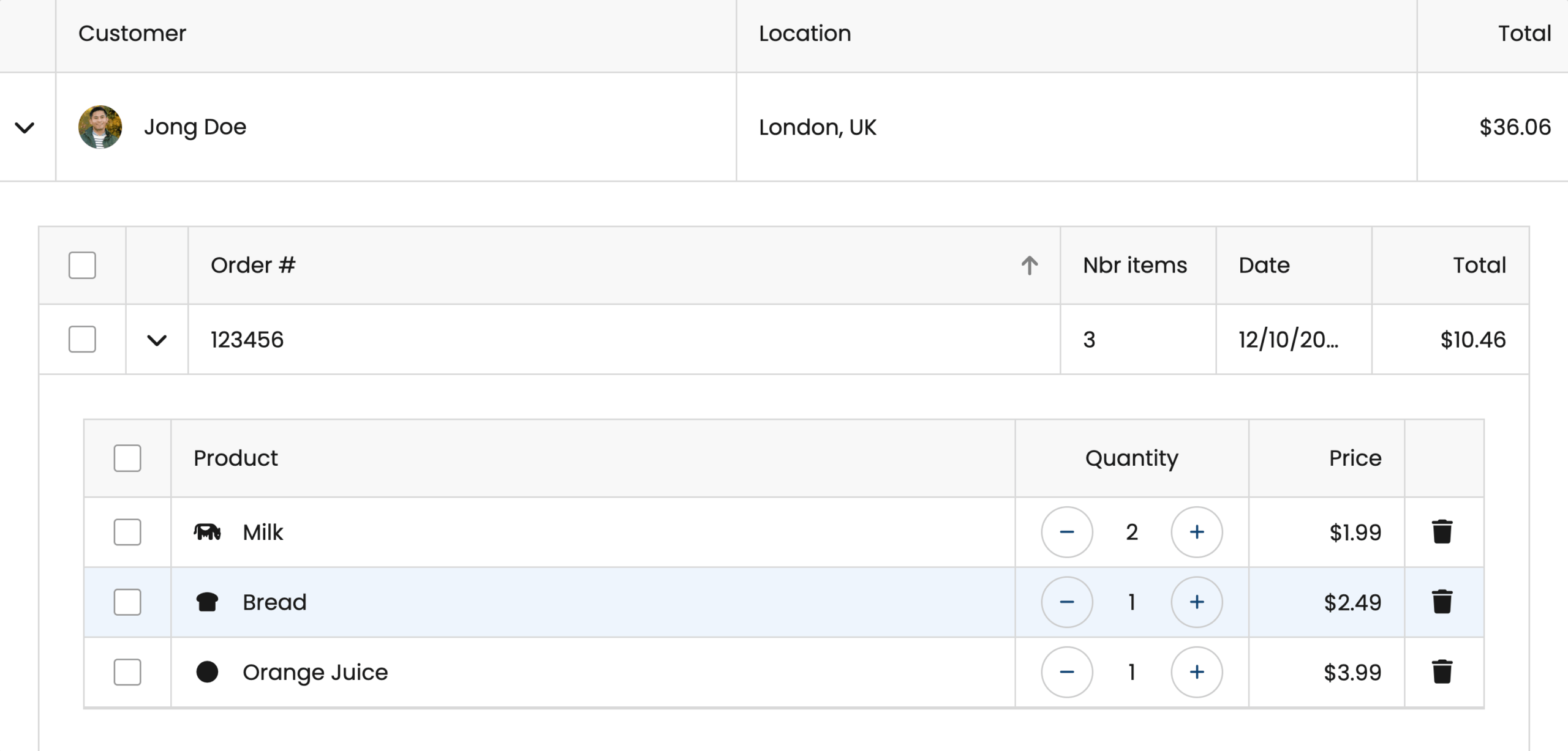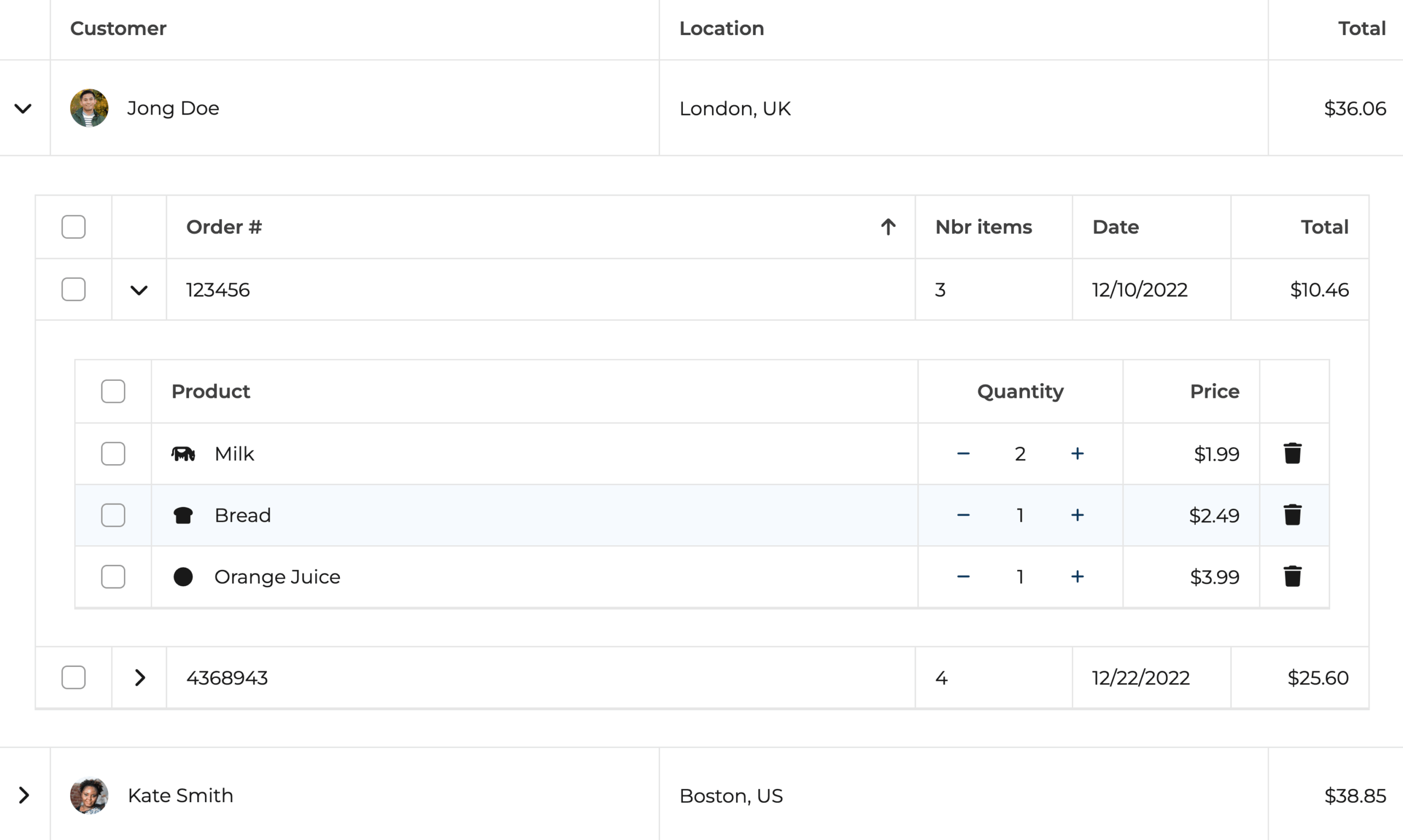 Bryntum Grid offers every feature you’d expect from a professional grid component, including: