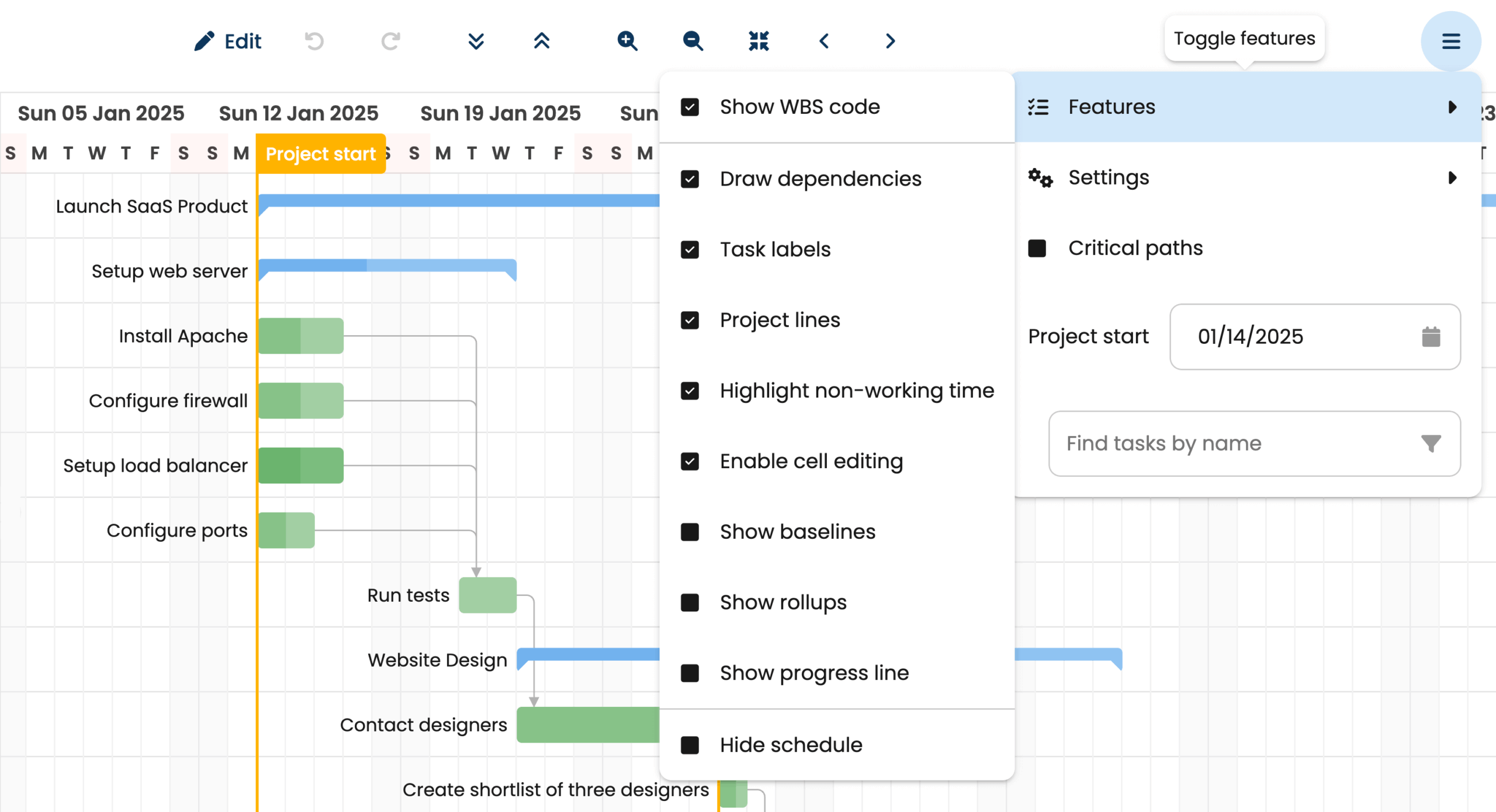 Apply the React control wrapper to your Bryntum Gantt for additional features. Bryntum React Gantt chart features include the task editor, configurable tooltips, and resource assignment editor.