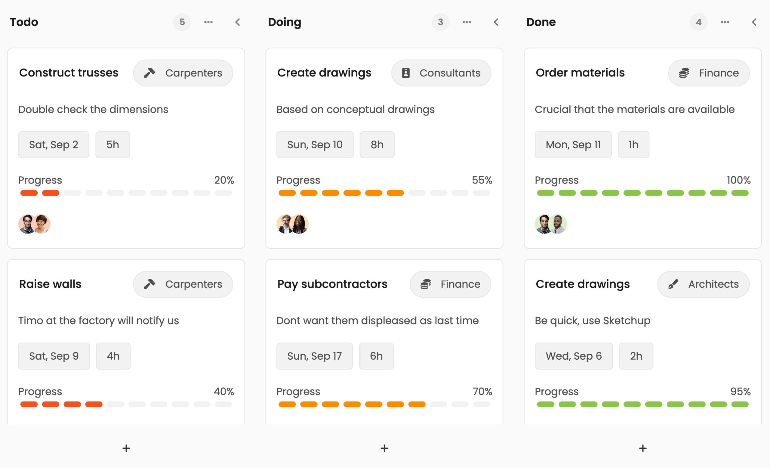 Create order out of chaos. Group tasks into swimlanes and any number of columns. Collapse swimlanes and columns to hide less important tasks. Find the tasks that matter most with filters.