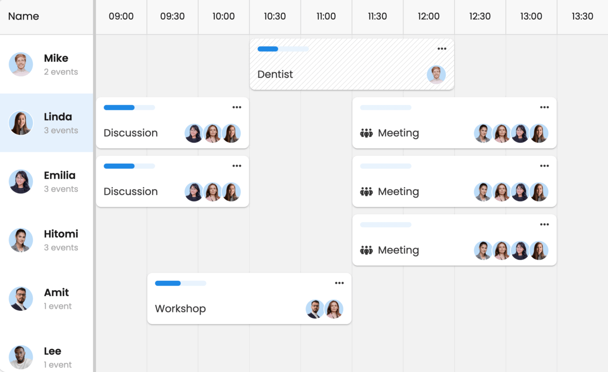 Based on our Grid component, Bryntum Scheduler inherits many of its capabilities, making for an interactive Scheduler that supports: