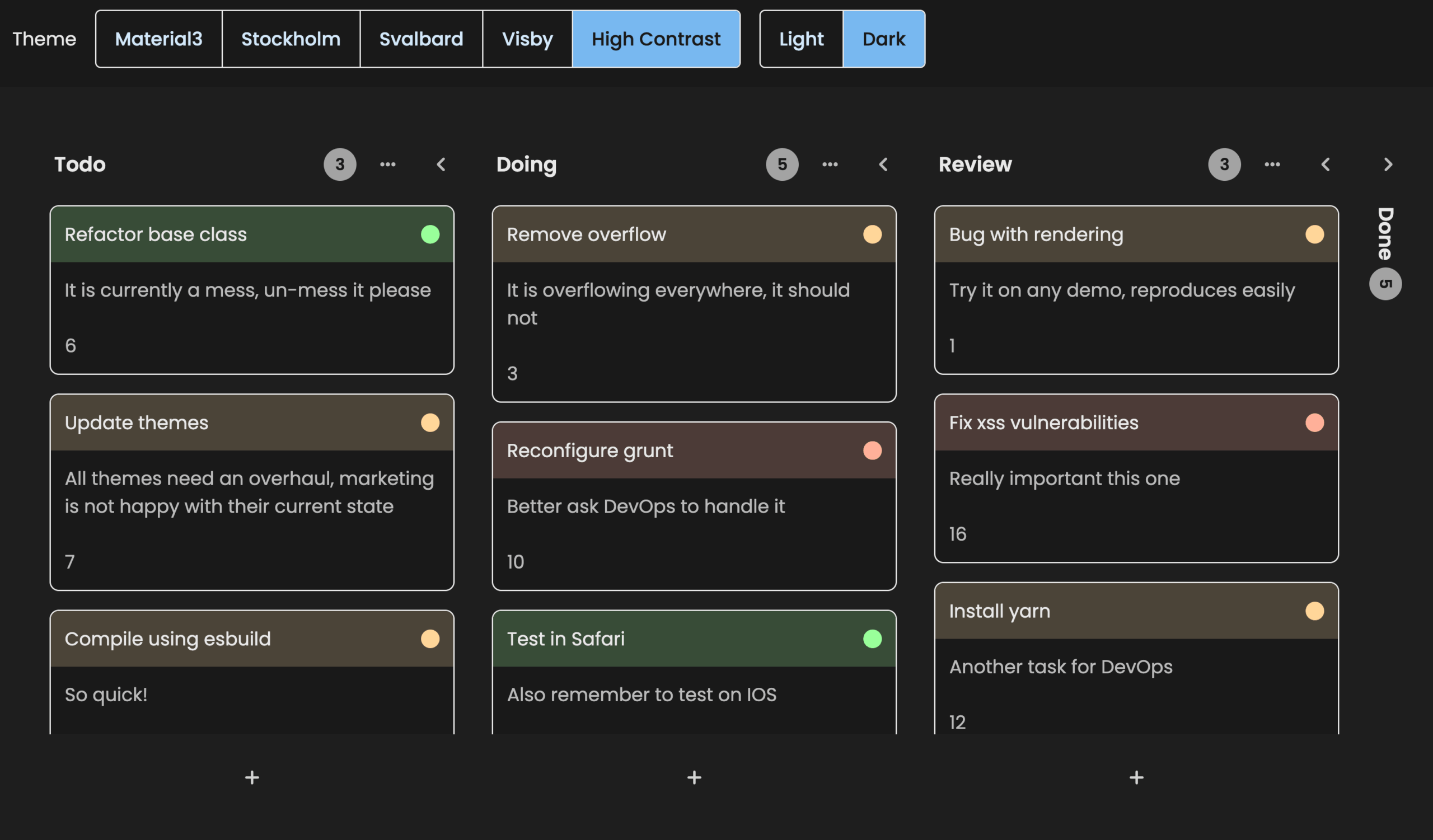 - Customize the rendering and styling of cards, columns and swimlanes.