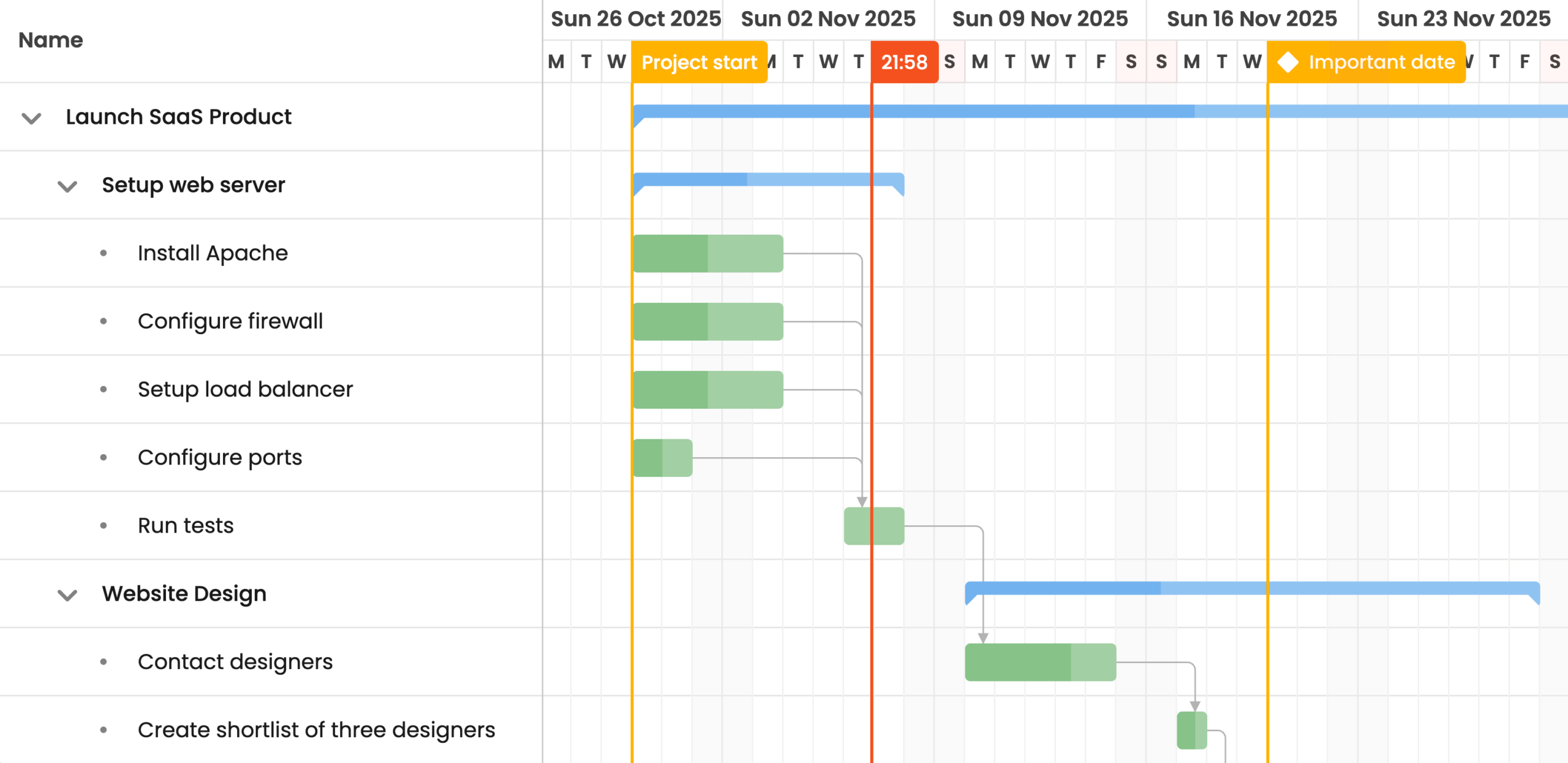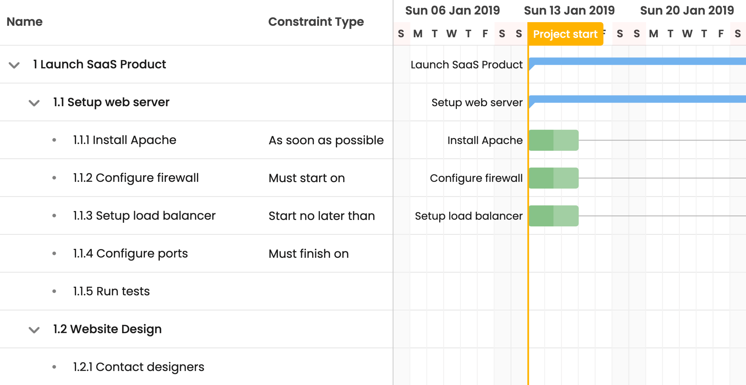 The Bryntum Vue Gantt engine provides asynchronous scheduling of any number of tasks by taking task dependencies, constraints, and scheduling modes into account. The Bryntum Vue Gantt engine is implemented independently from the DOM and can also be run on a node server.