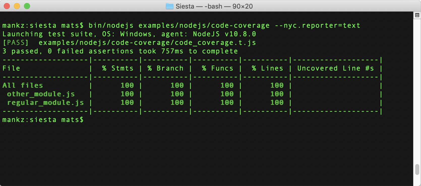 Today we are glad to announce the Siesta 5.1.0 release. In this release, we present a completely new, re-engineered code coverage module. It might seems strange to release 5.1 immediately after 5.0, but this is what the semantic versioning rules dictate, so we follow.